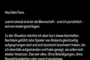 “但我想澄清一下事情的經(jīng)過:當時感覺好像有十名亞特蘭大球員同時跳起來大聲抱怨,我也站起來讓他們坐下。僅此而已。沒有任何侮辱、不尊重或其他任何不當行為。即使賽后,裁判也無法向我解釋為什么我因此被紅牌罰下。我只是想澄清一下?!?/p>