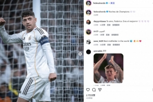 巴爾韋德也在賽后通過社媒曬出自己的振臂慶祝照,并配文:“歐冠之夜????”。