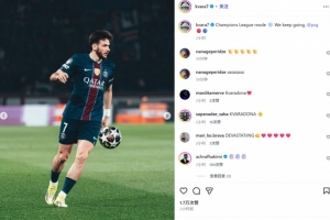 克瓦拉茨赫利亞也在賽后通過社媒曬出自己的比賽照,并配文:“歐冠模式?? 我們繼續(xù)前進,@巴黎圣日爾曼 ????”