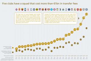 緊隨其后的是曼城,藍(lán)月亮的陣容花費(fèi)15.84億歐。此外,曼聯(lián)(13.12億歐)、阿森納(11.02億歐)以及皇馬(10.74億歐)的陣容支出均超過(guò)10億歐。