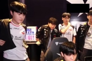 在對陣DK時的進(jìn)場鏡頭中,Keria并未與隊(duì)友一起進(jìn)場;而賽中的轉(zhuǎn)播鏡頭中,Keria在休息室里站著有一點(diǎn)吃力,需要用手撐著桌子。