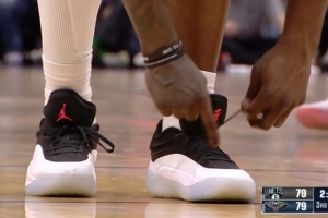 罰球時(shí)緊了緊鞋帶