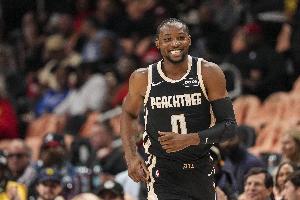 庫明加上半場(chǎng)出戰(zhàn)16分鐘,4投2中,三分2鐘1,罰球8中6,高效砍下11分,另有1板1助1帽,正負(fù)值+22。