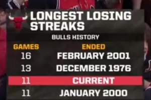 單月0勝11負(fù),也是公牛隊(duì)史最差單月戰(zhàn)績(jī)。