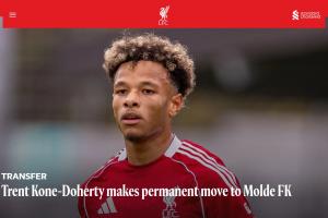 體育資訊2月28日訊 利物浦官方宣布,19歲邊鋒特倫特·科內(nèi)·多爾蒂加盟莫爾德,據(jù)悉轉(zhuǎn)會(huì)費(fèi)75萬歐元,這筆交易包含了回購條款以及二轉(zhuǎn)分成條款。