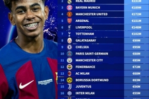體育資訊2月28日訊 德國轉(zhuǎn)會(huì)市場盤點(diǎn)了各大俱樂部2025年球衣銷售收入情況,巴薩以2.77億歐元居首,皇馬以2.31億歐元位居次席,足壇僅兩家西甲豪門球衣銷售收入超兩億歐。