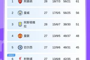 體育資訊02月28日訊 英超第28輪,維拉客場0-2不敵狼隊(duì),目前多賽一場領(lǐng)先身后的曼聯(lián)3分,領(lǐng)先排名第6暫位歐聯(lián)區(qū)的利物浦6分。最新積分榜如下: