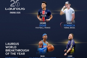 體育資訊3月3日訊 2026年勞倫斯最佳突破獎候選名單出爐,巴黎邊鋒杜埃在列。