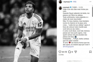 體育資訊3月4日訊 在得知羅德里戈受傷后,桑托斯前鋒內(nèi)馬爾在社交媒體發(fā)文,為羅德里戈送上鼓勵(lì)。