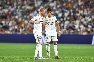 維尼修斯和居萊爾作為被寄予厚望的兩位領(lǐng)軍人物,都沒能站出來。如一些專業(yè)人士所預(yù)測的那樣,馬斯坦托諾的情況也類似,除了一個(gè)幸運(yùn)進(jìn)球之外,他沒有展現(xiàn)出可以挑戰(zhàn)亞馬爾,爭奪世界足壇霸主地位的實(shí)力。總之就是,完全失控,無人領(lǐng)頭。