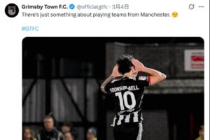 比賽結(jié)束后,格林斯比官方曬出比分圖,并且配文:“和來自曼徹斯特的球隊踢比賽真的有點說法的。??”