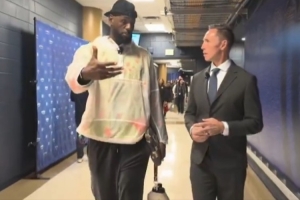 體育資訊3月6日訊 今日NBA焦點戰(zhàn),湖人客場挑戰(zhàn)掘金,詹姆斯賽前到場后見到了自己的播客搭檔納什。