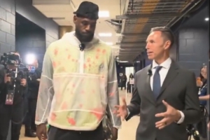 體育資訊3月6日訊 今日NBA焦點(diǎn)戰(zhàn),湖人客場(chǎng)挑戰(zhàn)掘金,詹姆斯賽前到場(chǎng)后見(jiàn)到了自己的播客搭檔納什。