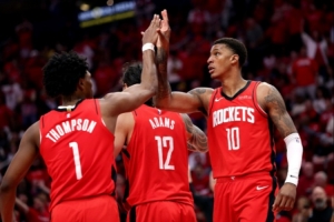 火箭(22-13):杜蘭特30分12板4助2帽、阿門24分9板3助2斷、謝潑德20分3板4助、史密斯13分8板1助2斷3帽、伊森6分3板2助2斷、亞當斯5分9板3助、奧科吉4分5板2助、芬尼-史密斯3分3板1助、卡佩拉4板1助