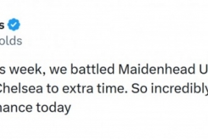 雷克瑟姆老板“死侍”瑞安·雷諾茲社媒發(fā)文:“三年前的這一周,我們與麥登赫德(目前第6級別球隊)戰(zhàn)平,而今天我們將切爾西逼進加時賽,我為雷克瑟姆今天的表現(xiàn)感到無比驕傲?!?/p>