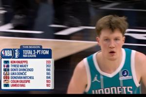 此前,克尼佩爾已經(jīng)打破了NBA歷史新秀單賽季三分命中數(shù)紀(jì)錄(此前基根·穆雷206記三分),還有望成為歷史首位拿下聯(lián)盟賽季三分王的新秀球員。