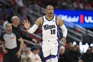 今天結(jié)束的NBA常規(guī)賽中,國(guó)王主場(chǎng)126-110戰(zhàn)勝公牛。此役,威斯布魯克出戰(zhàn)34分43秒,17中7,其中三分5中3,罰球6中6,得到23分11籃板12助攻1搶斷,沒(méi)有失誤,正負(fù)值+10。