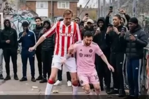 克勞奇社媒曬出AI視頻,內(nèi)容為他在街頭足球中搶斷梅西并破門,然后做出標(biāo)志性的機(jī)械舞慶祝動作。