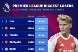 英超身價跌幅榜↓