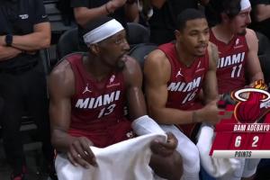 此役,熱火球星阿德巴約狀態(tài)神勇,前三節(jié)狂轟62分,不僅打破了隊史單場得分紀(jì)錄(詹姆斯61分),比肩科比三節(jié)62分神跡。