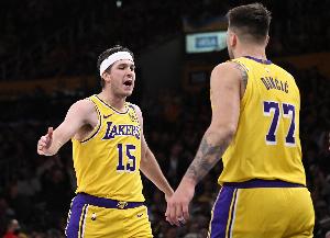 湖人后場(chǎng)搭檔里夫斯和東契奇第三節(jié)合力砍下30分。