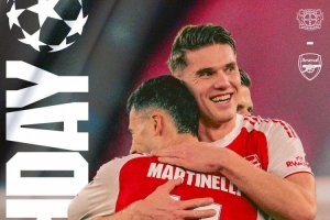 阿森納官方社媒發(fā)布了為此役制作的海報(bào),約克雷斯、馬丁內(nèi)利出鏡。