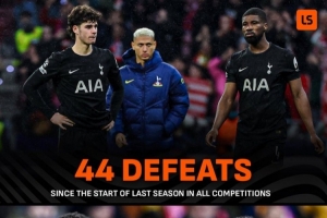 據LiveScore統(tǒng)計,上賽季以來熱刺各賽事輸?shù)?4場比賽,與阿森納近5個賽季(2021年8月份以來)輸?shù)舻谋荣悎龃蜗嗤?/p>