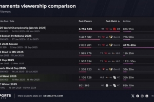 體育資訊3月11日訊 據(jù)外網(wǎng)數(shù)據(jù)統(tǒng)計,先鋒賽入選2025年最受關(guān)注的英雄聯(lián)盟賽事名單,首屆賽事吸引了110萬觀眾。