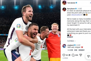 體育資訊3月11日訊 在沃克退出英格蘭隊(duì)后,他的國(guó)家隊(duì)隊(duì)友凱恩更新社交媒體送上祝福。
