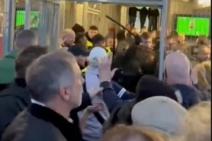 維拉資訊賬號(hào)發(fā)布在社交媒體上的現(xiàn)場(chǎng)視頻顯示,今天凌晨,當(dāng)?shù)貓?zhí)法人員似乎正在向一群隨隊(duì)出征的球迷揮動(dòng)警棍。可以聽到一名維拉球迷高喊“不”,另一名球迷則試圖阻止沖突進(jìn)一步升級(jí),說(shuō)著“你會(huì)被逮起來(lái)的”。