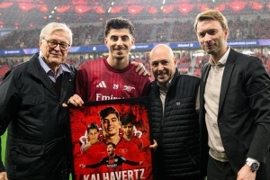 ??有情有義!勒沃庫(kù)森在與阿森納的比賽前,為哈弗茨準(zhǔn)備了歡迎儀式,看臺(tái)上球迷也高舉“歡迎回家”的橫幅。