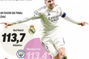 體育資訊03月13日訊 歐冠1/8決賽首回合,皇馬主場3-0完勝曼城。西班牙媒體《馬卡報》撰文,分析了皇馬在本場比賽中展現(xiàn)出的跑動能力。