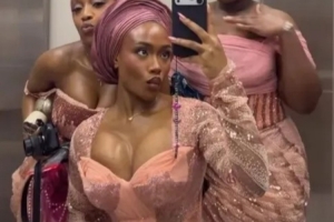 這位阿森納球星的女友在Instagram快拍中分享了多段婚禮當天的視頻,慶祝這一美妙時刻。其中一張照片里,她與另外兩位賓客在電梯里自拍合影,三人均身著驚艷的粉色禮服。