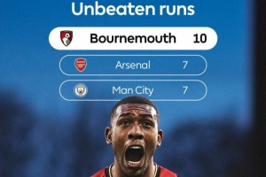 英超官方數(shù)據(jù)統(tǒng)計顯示,伯恩茅斯的10場不敗是目前英超最長,阿森納和曼城都是7場不敗。