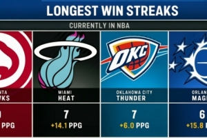 連勝期間,各隊(duì)場(chǎng)均凈勝分: