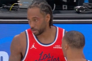 快船VS國(guó)王,倫納德眼角被打破血流不止,回更衣室治療后目前已經(jīng)返場(chǎng)。