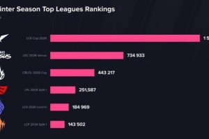 體育資訊3月15日訊 根據(jù)Esports Charts數(shù)據(jù)統(tǒng)計,LCK海外收視達150萬人,超LPL海外6倍!