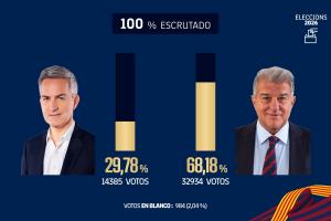 巴薩俱樂部主席選舉結(jié)束,拉波爾塔成功當(dāng)選。他獲得了32934張票,得票率68.18%?!妒澜珞w育報(bào)》指出,在巴薩俱樂部歷史上的所有主席選舉中,得票數(shù)比拉波爾塔更高的只有2010年的羅塞爾,當(dāng)時(shí)他獲得了35021張票。而得票率比拉波爾塔更高的只有1997年的努涅斯,當(dāng)時(shí)他的得票率是76.31%。