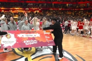 此役過后,因勝負(fù)關(guān)系占優(yōu),捷克隊(duì)力壓巴西隊(duì)晉級世界杯正賽,球員賽后合影時向中國女籃比心。