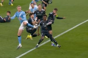 體育資訊03月18日訊 歐冠1/8決賽次回合,曼城對陣皇馬。曼城角球機(jī)會(huì),哈蘭德等人抗議弗蘭·加西亞手球,裁判沒有表示。