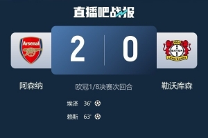 體育資訊3月18日訊 歐冠1/8決賽次回合,阿森納主場2-0擊敗勒沃庫森,兩回合總比分3-1淘汰對手,晉級八強(qiáng)。