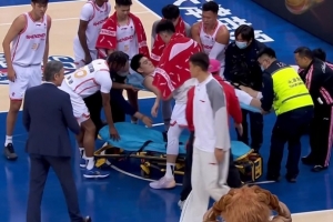 本場比賽,深圳男籃球員馮熙瑞在防守時(shí)空中對抗后重摔在地,隨后被擔(dān)架直接抬走。