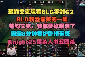 楚鈞艾克看BLG零封G2,BLG粉絲最爽的一集:我都要掉眼淚了,露露8分鐘香爐臥槽帶練,Knight25層殺人書四殺。