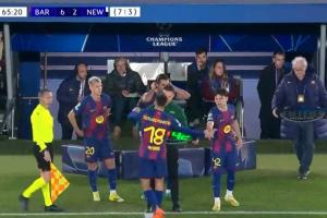 體育資訊03月19日訊 歐冠1/8決賽次回合,巴薩對(duì)陣紐卡。66分鐘,巴薩連換三人,坎塞洛、萊萬、費(fèi)爾明被換下,奧爾莫、費(fèi)蘭、18歲埃斯帕特出場(chǎng)。