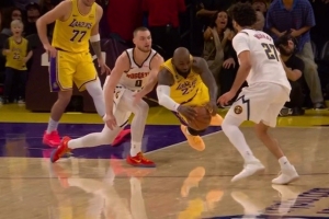 被里夫斯踢到了!東契奇直接摔倒地上 隨后一瘸一拐的回替補席