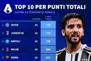 過去10個賽季意甲積分榜: