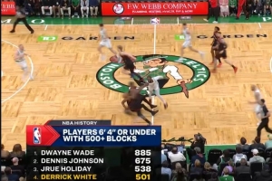 6尺4以下球員500+蓋帽榜:榜首韋德885帽,第2位丹尼斯·約翰遜675帽,第3位朱·霍勒迪538帽