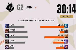 體育資訊3月21日訊?今日2026先鋒賽G2橫掃GenG,而在決勝局中Canyon的狼母僅打出了全場最低的4.7K傷害;還不如G2的輔助露露打的高。