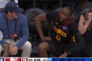 GIF-庫(kù)明加坐在觀眾席休息 等隊(duì)友過來拉才起身