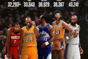 談到自己生涯總得分超越邁克爾·喬丹,上升至NBA歷史第五,杜蘭特笑著說道:“我還有四人需要去超越?!?/p>